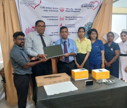 கிளிநொச்சி மாவட்ட பொது மருத்துவமனைக்கு 18 லட்சம் பெறுமதியான இரத்த அழுத்த பாவையிடும் கருவியும் இதைய துடிப்பை கண்டறியும் கருவிகளும் வழங்கி வைக்கப்பட்டுள்ளன.