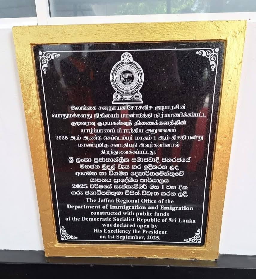 ஜனாதிபதி அநுரவால் நேற்று ஆரம்பித்து வைக்கப்பட்ட அபிவிருத்தித் திட்டங்களில், பெயர்ப் பலகைகளில் தமிழ்மொழிக்கு முன்னுரிமை வழங்கப்பட்டிருந்ததுடன், ஜனாதிபதியின் பெயர் அவற்றில் இடம்பெறவில்லை.