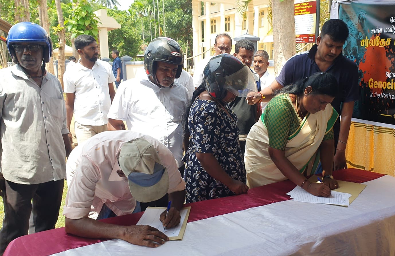வடக்கு – கிழக்கு மண்ணில் உள்ள மனிதப் புதைகுழிகள் மற்றும் இனப்படுகொலைக்கு சர்வதேச நீதி கோரிய கையெழுத்து போராட்டம் இன்றும் தொடர்கின்றது.