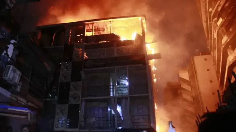 இந்த வணிக வளாகத்தின் 4-வது மாடியில் திடீரென தீப்பிடித்தது. மளமளவென கட்டிடத்தின் மற்ற பகுதிகளுக்கும் தீ வேகமாக பரவியது.