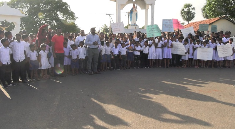 கட்டைக்காடு பொதுமக்களின் ஒழுங்குபடுத்தலில் கட்டைக்காடு பங்கு தந்தை தலைமையில் இன்று காலை 7:30 மணி அளவில் குறித்த போராட்டம் முன்னெடுக்கப்பட்டது