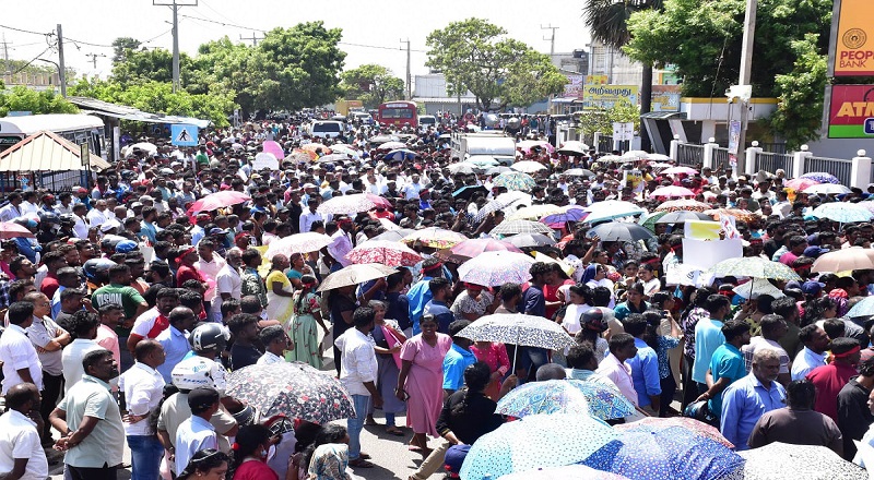 பல்வேறு கிராமங்களில் உள்ள மீனவர்கள் கடற்தொழிலுக்கு செல்லவில்லை.இந்த நிலையில் காலை 10.30 மணியளவில் மன்னார் பொது விளையாட்டு மைதானத்தில் பல ஆயிரக்கணக்கான மக்கள் ஒன்று கூடினர்.