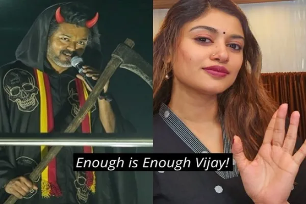 கரூரில் தமிழக வெற்றிக்கழகத்தின் தலைவர் விஜய் மேற்கொண்ட பரப்புரையின் போது 41 பேர் கூட்ட நெரிசல் உயிரிழந்தனர். இந்த சம்பவம் தற்போது வரையில் மிகப்பெரிய அதிர்வலைகளை உருவாக்கி வருகின்றது. இந்த சம்பவத்தில் 10 குழந்தைகள், கர்ப்பிணிகள் உட்பட 41 பேர் உயிரிழந்தது மிகப்பெரிய வேதனையை ஏற்படுத்தியது. இந்த சம்பவம் நடைபெற்ற சில நேரங்களிலேயே நடிகை ஓவியா தனது இன்ஸ்டாகிராம் பக்கத்தில் விஜயை கைது செய்ய வேண்டும் என போஸ்ட் போட்டார். இதைத்தொடர்ந்து விஜயின் ரசிகர்கள், தொண்டர்கள் ஓவியாவின் பதிவுக்கு எதிராக தமது கருத்துக்களை முன்வைத்தனர். அது மட்டும் இல்லாமல் ஓவியாவை ஆபாசமாகவும் திட்டினர். அதனையும் ஓவியா ஸ்க்ரீன் ஷாட் எடுத்து இன்ஸ்டா ஸ்டோரில் பதிவிட்டார். இவ்வாறு தொடர்ச்சியாக விஜய்க்கு எதிராக தனது கருத்துக்களை பதிவிட்டு வருகின்றார் ஓவியா. மேலும் கரூர் சம்பவம் தொடர்பில் இதுவரை விஜயை கேள்வி கேட்கவில்லை, அவருடைய வாகனத்தை பறிமுதல் செய்யவில்லை என பல குற்றச்சாட்டுகளும் முன்வைக்கப்பட்டு வருகின்றன. இந்த நிலையில், மீண்டும் ஒரு சர்ச்சை பதிவை பதிவிட்டுள்ளார் நடிகை ஓவியா. அதில் கரூர் சம்பவம் நடைபெற்று எட்டு நாட்கள் ஆகின்றன. விஜயின் அலட்சியத்தால் 41 பேர் உயிரிழந்தனர். ஆனால் இதுவரை பாதிக்கப்பட்ட குடும்பங்களை விஜய் நேரில் சென்று இன்னும் சந்திக்கவில்லை. எனவே எல்லோரும் ஒரு காரியத்தைச் செய்வோம் என இறுதியில் ஒரு லைக் ஒரு ஸ்லிப்பர் ஷாட் என பதிவிட்டுள்ளார். அதாவது இவர் மறைமுகமாக ஒரு லைக் என்றால் ஒரு செருப்பு. ஆகமொத்தத்தில் அவரை செருப்பால் அடிக்கும் விதத்தில் இந்த பதிவை ஓவியா பதிவிட்டுள்ளமை குறிப்பிடத்தக்கது.