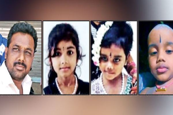 இந்நிலையில் நேற்று முன்தினம் மாலை மதுபோதையில் வீட்டிற்கு வந்த கணவன் தனது வீட்டை பூட்டிக்கொண்டு தனது இரண்டு மகள்கள் மற்றும் ஒரு மகனை கழுத்தை அறுத்துக் கொலை செய்துள்ளார்.