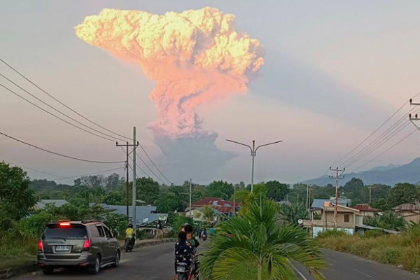எரிமலை வெடித்ததில் அதிலிருந்து சாம்பல் வானுயர 10 கி.மீ உயரத்துக்குத் தூக்கி வீசப்பட்டதாக தெரிவிக்கப்பட்டுள்ளது.