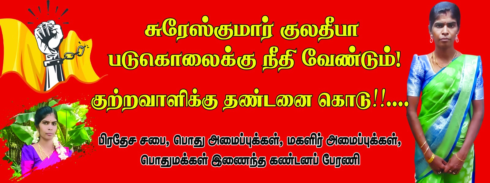 காரைநகர் பகுதியைச் சேர்ந்த சுரேஷ்குமார் குலதீபா என்ற இளம் குடும்பப் பெண்ணின் கொலைக்கு எதிர்ப்பு தெரிவித்து முன்னெடுக்க திட்டமிடப்பட்டிருந்த கவனத்திற்கு போராட்டத்திற்கு நீதிமன்றம் தடை உத்தரவு பிறப்பித்துள்ளது.