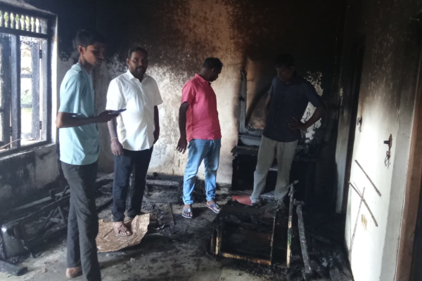 இதன்காரணமாக வீட்டின் ஒரு பகுதி எரிந்துள்ளதுடன் வீட்டில் நிறுத்திவைக்கப்பட்டிருந்த மோட்டார் சைக்கிளும் எரிந்துள்ளது. குறித்த வீட்டிலிருந்த பொருட்கள், கதவு, ஜன்னல், கூரை என்பனவற்றில் சேதங்கள் ஏற்பட்டுள்ளன.