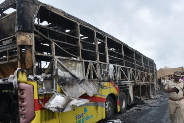 இந்தியாவை உலுக்கிய சம்பவம்; பஸ் தீப்பிடித்து 25 பேர் உயிரிழப்பு