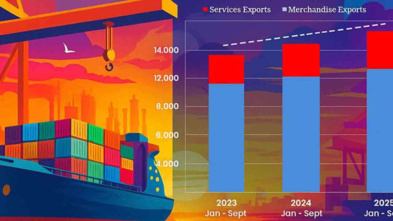 2025 செப்டம்பர் இல் மட்டும், வணிக ஏற்றுமதி, சேவைகள் ஏற்றுமதி ஆகிய இரண்டையும் உள்ளடக்கி மொத்த ஏற்றுமதி வருவாய் 1,469.75 மில்லியன் அமெரிக்க டொலர்களை எட்டியுள்ளது. இது 2024 செப்டம்பர் உடன் ஒப்பிடும்போது 12.33% வளர்ச்சியாகும்.
