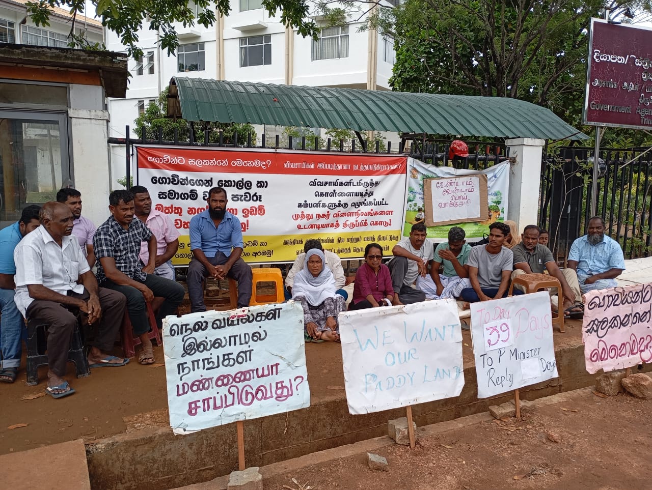 திருகோணமலை முத்து நகர் விவசாயிகள் இன்றுடன் 39 ஆவது நாளாக சத்தியாக்கிரகப் போராட்டத்தை திருகோணமலை மாவட்ட செயலகம் முன்பாக நடாத்தி வருகின்றனர்.