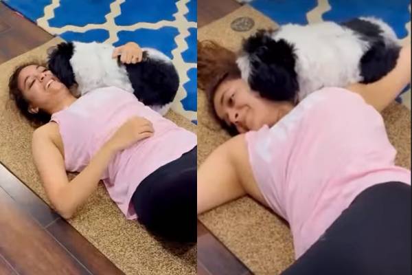 நடிகை கீர்த்தி சுரேஷ் தென்னிந்திய சினிமாவில் முன்னணி ஹீரோயின்களில் ஒருவர். பேபி ஜான் என்ற திரைப்படத்தின் மூலம் ஹிந்தியிலும் வலம் வருகிறார். ஆனால் பேபி ஜான் படத்திற்கு எதிர்பார்த்த வரவேற்பு ரசிகர்கள் மத்தியில் கிடைக்கவில்லை.சமீபத்தில், தனது பதினைந்து வருட காதலர் ஆன்டனியை திருமணம் செய்து கொண்டார். தற்போது, சில படங்களை கைவசம் வைத்துள்ளார்.இந்நிலையில், வொர்க் அவுட் செய்யும் போது கீர்த்தி சுரேஷின் நாய் அவரை சொந்தரவு செய்துள்ளது. அதிலும் கீர்த்தி சுரேஷின் முத்தம் மழை பொழிந்துள்ளதை கீர்த்தி சுரேஷி இணையத்தில் பகிர்ந்துள்ளார்.