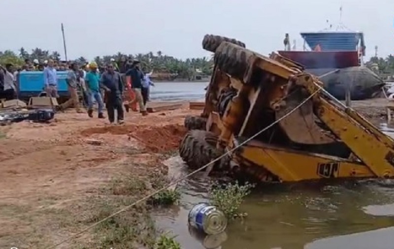 ஜேசிபி இயந்திரம் ஊடாக படகுப் பாதையை கடலுக்குள் இறக்க முற்பட்ட வேளையில் குறித்த சம்பவம் இடம் பெற்றது.