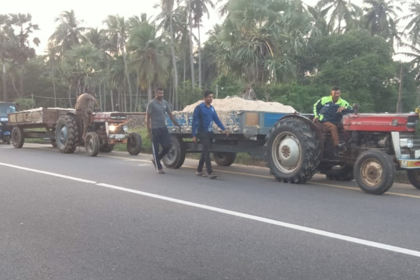 இன்று (29) அதிகாலை வேளை சட்டவிரோத மணலுடன் பயணித்த இரண்டு உழவு இயந்திரங்களை பொலிஸார் மடக்கி பிடிக்க முற்பட்ட வேளை, ஒரு உழவு இயந்திர சாரதி, வாகனத்தை கைவிட்டு தப்பி ஓடியுள்ளார்.