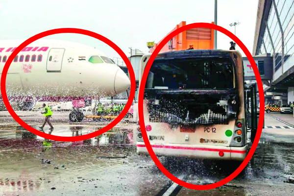 ஏர் இந்தியா விமானம் அருகில் திடீடீரென தீப்பிடித்த பேருந்தால் பரபரப்பு
