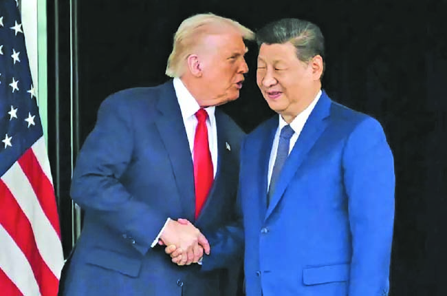 அவர்கள் உண்மையிலேயே வலுவான நடவடிக்கைகளை எடுக்கிறார்கள் என நான் நம்புகிறேன். எனவே, சீனப் பொருட்களுக்கான இறக்குமதி வரியை 57 சதவீதத்தில் இருந்து 47 சதவீதமாகக் குறைத்துள்ளேன். இனி, சீன பொருட்களுக்கான ஒட்டுமொத்த இறக்குமதி வரி 47 சதவீதமாக இருக்கும். எங்களுக்குள் ஒரு ஒப்பந்தம் ஏற்பட்டுள்ளது. இது ஓராண்டு ஒப்பந்தம் எனவும், இந்த ஒப்பந்தம் மேலும் தொடரும் என நம்புகிறேன். ஒப்பந்தம் முடிவடைவதற்கு முன்பாக நாங்கள் மீண்டும் சந்தித்து இது குறித்து கலந்துரையாடுவோம்.நான் எதிர்வரும் ஏப்ரல் மாதம் சீனாவுக்குச் செல்வேன். அதன் பிறகு சீன அதிபர் சீ ஜின்பிங் அமெரிக்கா வருவார். சீனா உடனான அரிய புவி கனிய மணல்கள் குறித்த பிரச்சினையும் தீர்க்கப்பட்டுள்ளது.