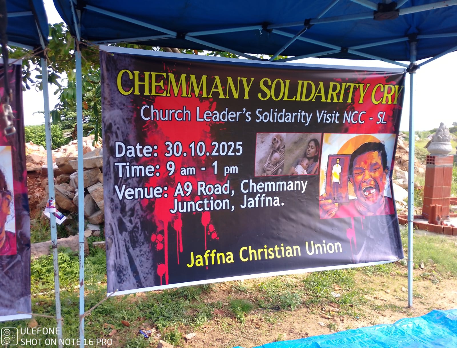 யாழ்ப்பாணம் கிறிஸ்தவ ஒன்றியத்தினர், செம்மணி புதைகுழிக்கு நீதி வேண்டியும், பாதிக்கப்பட்ட மக்களுடன் ஆதரவாக செயற்படுகின்றோம் என்பதை காட்டுகின்ற முகமாகவும் இன்றையதினம் செம்மணி பகுதியில் போராட்டம் ஒன்றை முன்னெடுத்தனர்.
