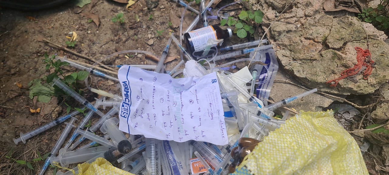 அங்கு மருத்துவ கழிவுகள் கொட்டப்பட்டுள்ளமை உறுதிப்படுத்தப்பட்ட நிலையில் சுகாதர பரிசோதகருக்கும், யாழ்ப்பாணம் பொலிஸாருக்கும் அறிவிக்கப்பட்டது.