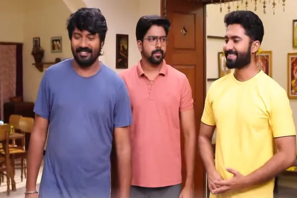சிறகடிக்க ஆசை சீரியலின் இன்றைய எபிசோட்டில், விஜயா வீட்டில் உள்ள பெண்கள் எல்லாரும் பாண்டிச்சேரி சென்ற காரணத்தினால் வீட்டில் உள்ள ஆம்பளைகள் சேர்ந்து சமைக்கின்றனர். இதனால் ஆளுக்கு ஒரு வேலை செய்து சமையல் வேலையை முடிக்கின்றார்கள்.இன்னொரு பக்கம் வீட்டில் யாரும் இல்லாத காரணத்தினால் முருகன் சவாரி கொடுத்த ரோகினியின் உறவினர்களை செல்வத்தை அழைத்துச் செல்லுமாறு முத்து சொல்லுகின்றார். ரோகிணியும் அவருடைய அம்மாவிடம் தான் பிளான் போட்டதுப்படியே நடந்து விட்டது இன்னைக்கு ஒரு நாள் டென்ஷன் இல்லாமல் இருக்கலாம் என்று கூறுகின்றார்.இதை தொடர்ந்து வீட்டில் சமையல் வேலை முடிந்ததும் ஒன்றாக அமர்ந்து சாப்பிட முத்து, மனோஜ், ரவி மற்றும் அண்ணாமலை இருக்கும்போது, அங்கு அண்ணாமலையின் உறவினர்கள் வந்து கல்யாண பத்திரிகை வைக்கின்றார்கள். இதன் போது அங்கிருந்த அண்ணாமலையின் பிள்ளைகளிடம் எப்போது உங்க வீட்டில் விசேஷம் என்று கேட்கின்றனர். அதன் பின்பு அவர்களை சாப்பிடுமாறு அண்ணாமலை சொல்ல, மனோஜ் வேண்டாம் என்று தடுக்கின்றார். ஆனாலும் அண்ணாமலை அவர்களை சாப்பிட வைத்து அனுப்புகின்றார். இதனால் சாப்பாடு முடிந்து விட்டது என்று மனோஜ் புலம்பித் தள்ளுகின்றார்.இறுதியில் சிந்தாமணியின் மகளோடு சத்யா காபி குடிக்கின்றார். இதன்போது சத்யா தன்னுடைய பேமிலி பேக்ரவுண்ட் பத்தி சொல்லுகின்றார். அதேபோல அவரும் தன்னுடைய அம்மா, அப்பா பிரிந்த கதையை சொல்ல முனைய, சத்யா அதை வேண்டாம் என்று சொல்லுகின்றார். இதனால் அவர் இம்ப்ரஸ் ஆகின்றார். இதுதான் இன்றைய எபிசோட்.