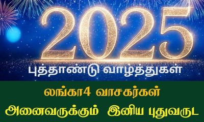 லங்கா4 வாசகர்கள் அனைவருக்கும் இனிய புதுவருட நல்வாழ்த்துக்கள்! மலர்ந்துள்ள 2025 புத்தாண்டு உங்கள் அனைவருக்கும் அமைதியான, மகிழ்ச்சியான மற்றும் வளமான புத்தாண்டாக அமைய வேண்டும். அனைவரின் மனங்களிலும், இன்பமான நிகழ்வுகளும், வெற்றியான நாட்களாகவும் இந்த ஆண்டு...